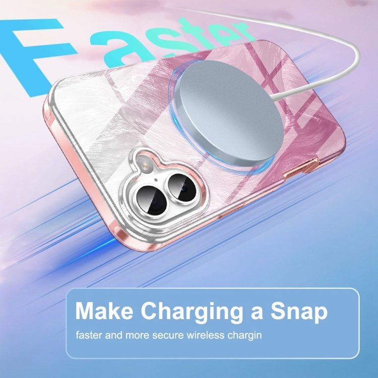 Funda híbrida TPU PC iPhone 16 Diseño plumas Degradado Imd (Rosa Claro)