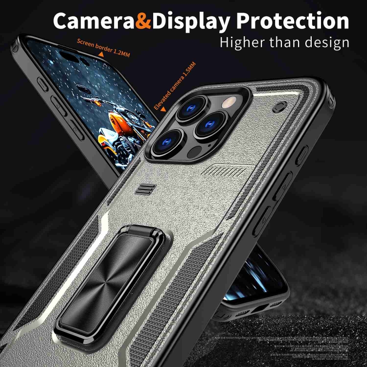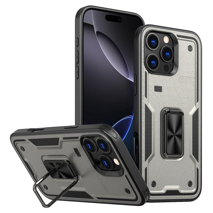Funda híbrida TPU y PC con soporte de anillo para iPhone 16 Pro Max (Gris Titanio)