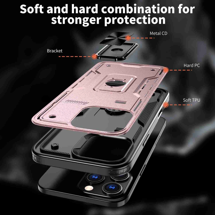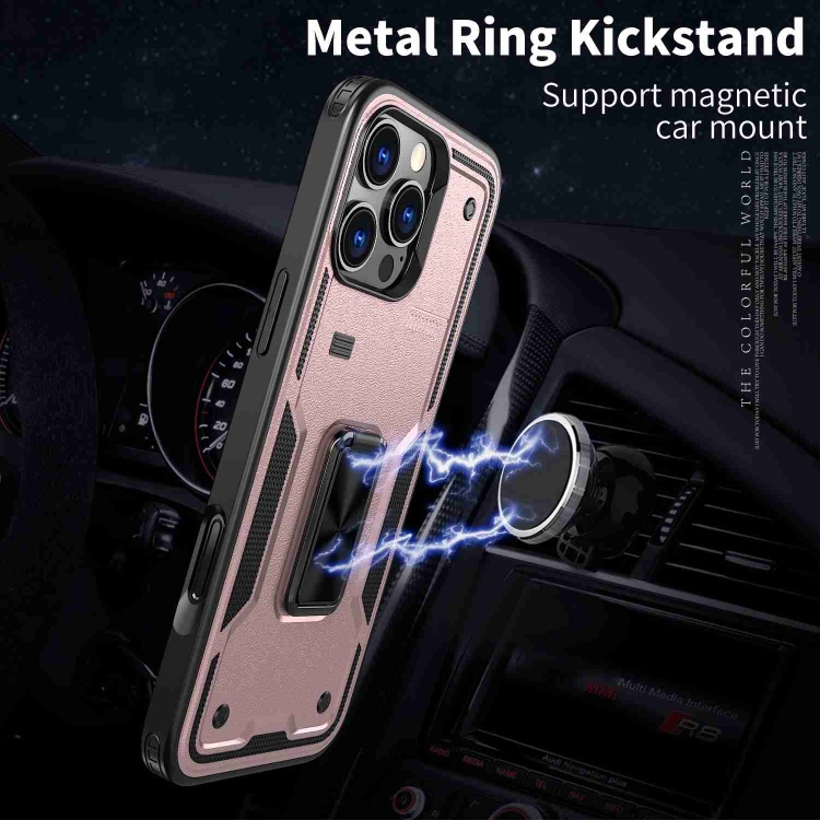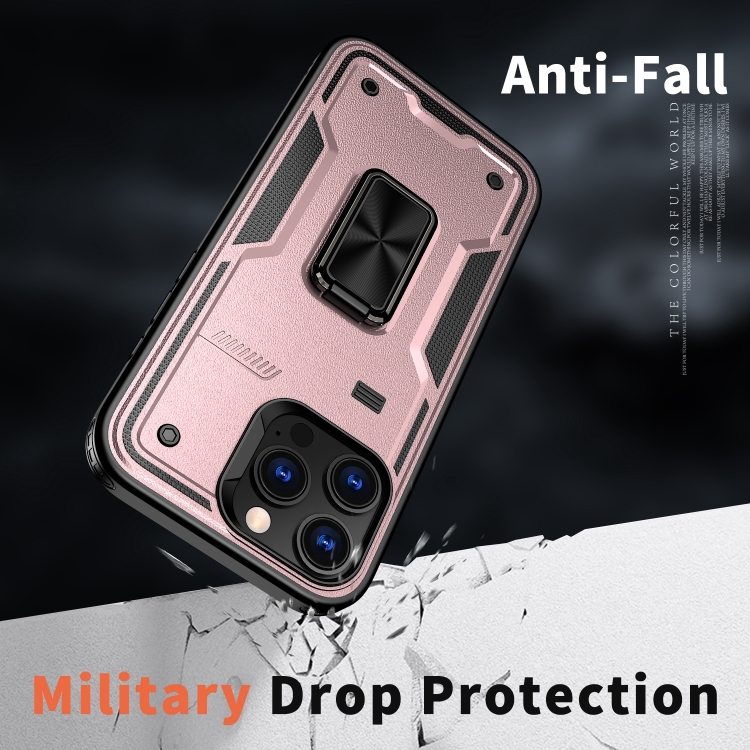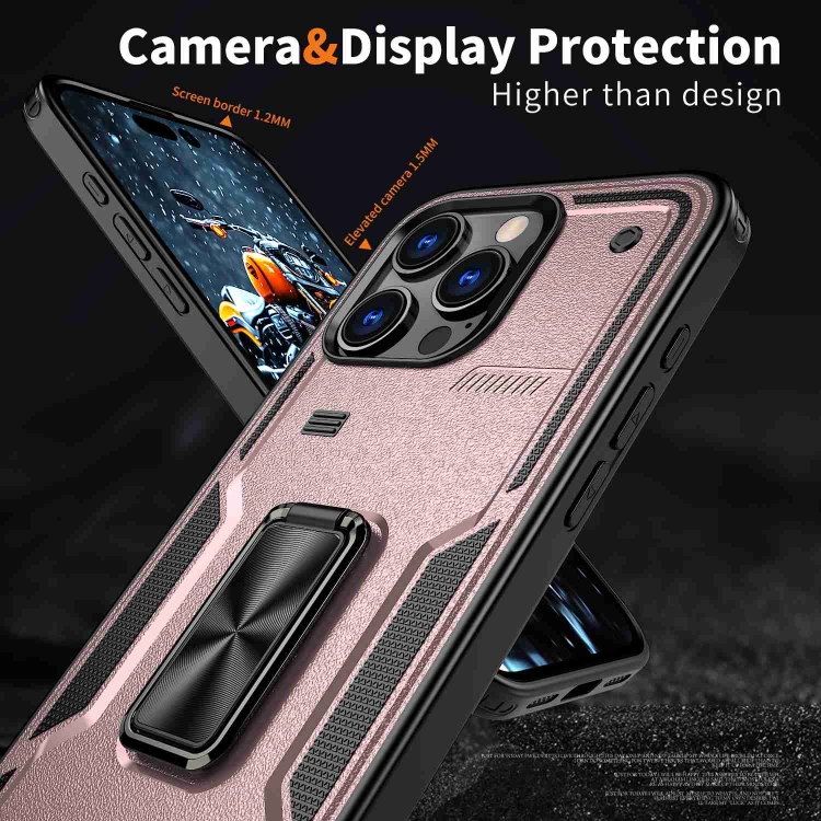 Funda Híbrida TPU y PC con Soporte de Anillo para iPhone 16 Pro Max (Oro Rosa)