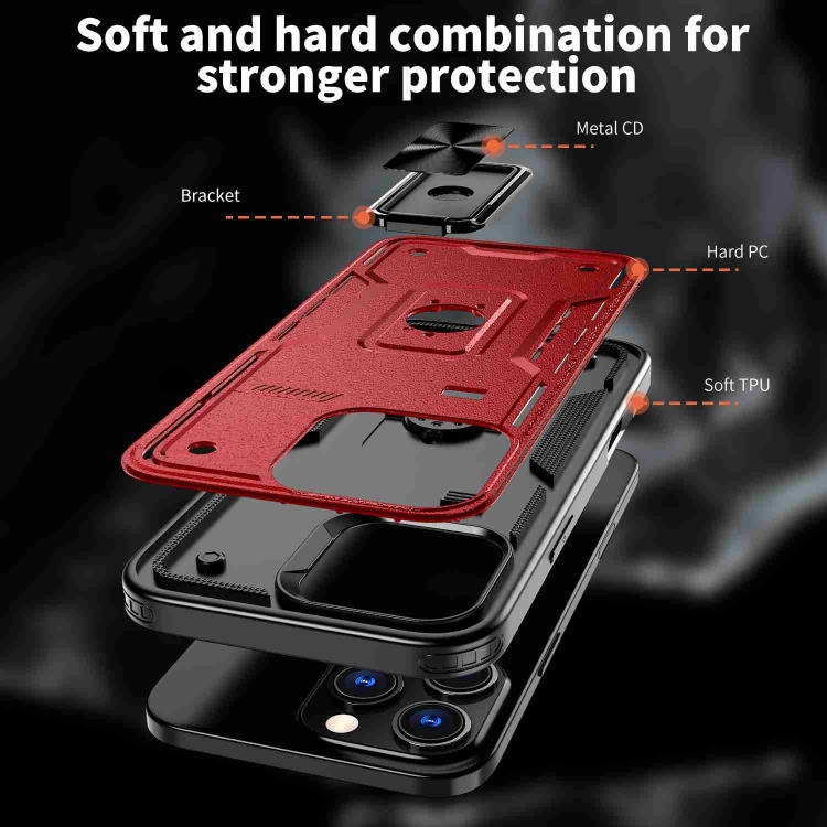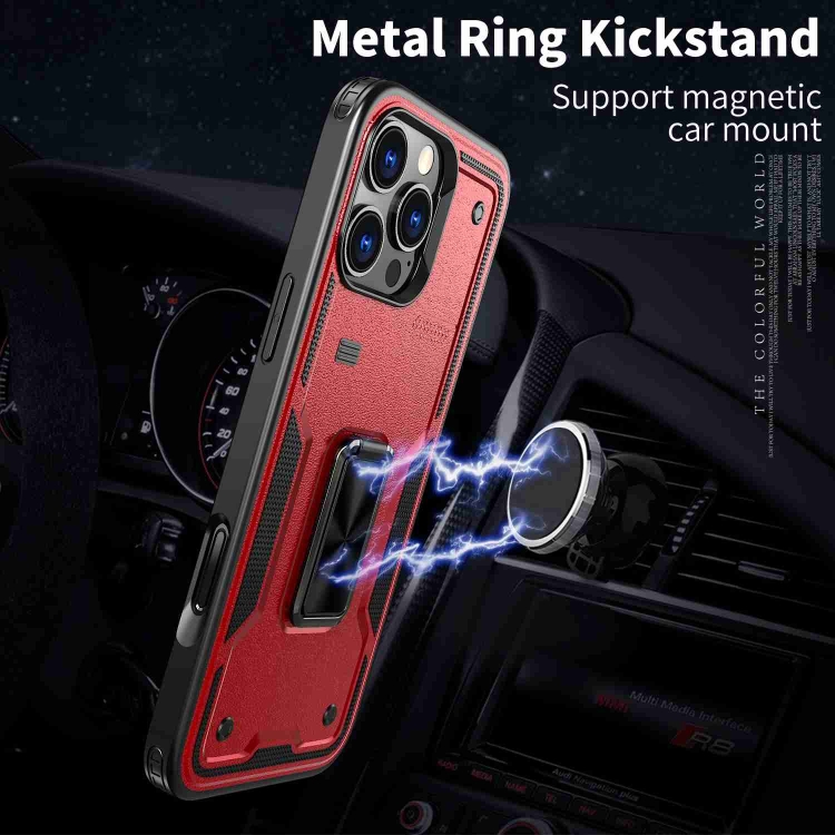 Funda Híbrida TPU y PC con Soporte de Anillo para iPhone 16 Pro (Roja)
