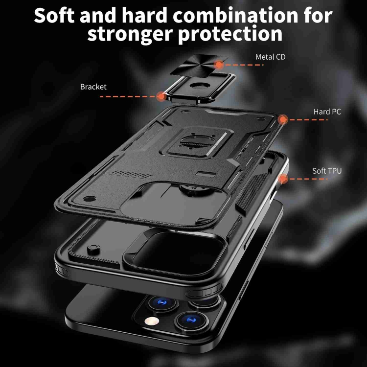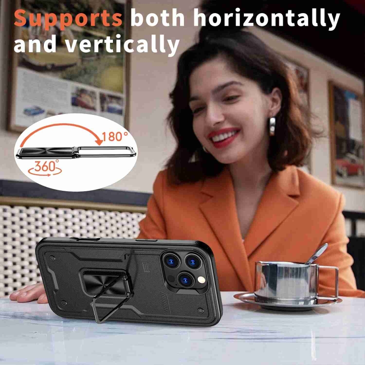 Funda Híbrida TPU y PC para iPhone 16 Pro Max con Soporte Anillo (Negra)