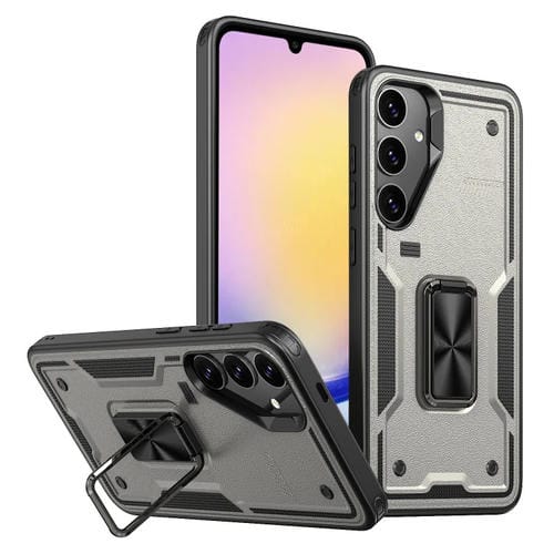 Funda híbrida TPU y PC con soporte para anillo Samsung Galaxy A25 5G (Gris Titanio)