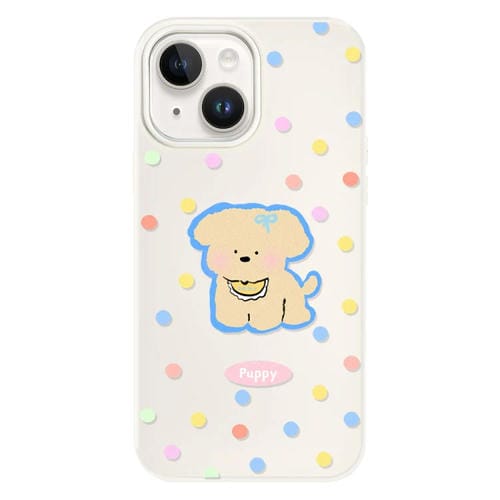 Funda híbrida TPU y PC con Tacto de Piel para iPhone 13 (Cachorro Amarillo y Blanco)