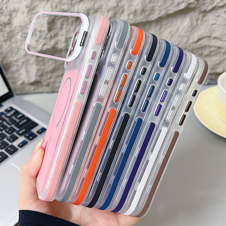 Funda híbrida de TPU y PC MagSafe para iPhone 17 Pro Max con soporte de lente galvanizado (naranja)