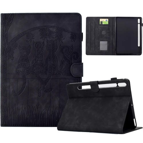 Funda Inteligente Cuero Samsung Galaxy Tab S9/S9 FE Relieve Gatos (Negra)