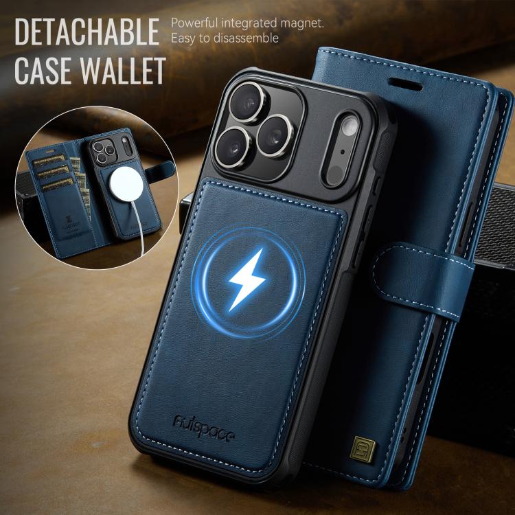 Funda magnética MagSafe AutSpace A05 2 en 1 con textura de piel de becerro retro para iPhone 17 Pro (Azul)