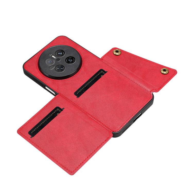 Funda Magnética para Huawei Mate 70 con Ranuras para Tarjetas y Doble Hebilla (Rojo)