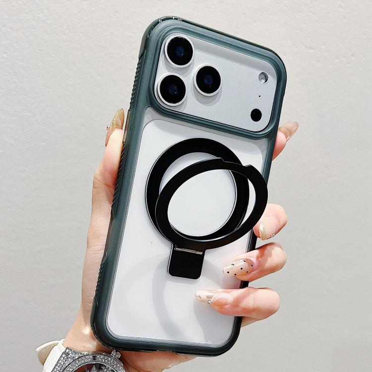 Funda MagSafe para iPhone 17 Pro Max con borde translúcido, soporte metálico y acabado MagSafe (negra)