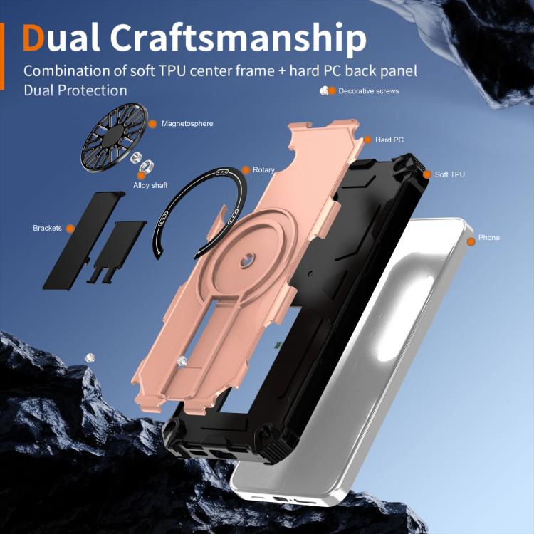 Funda MagSafe para Samsung Galaxy S24+ 5G con soporte metálico, a prueba de golpes y eje (oro rosa)