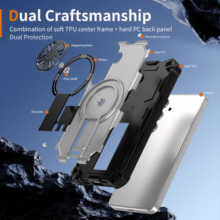 Funda MagSafe para Samsung Galaxy S24 5G con soporte metálico y a prueba de golpes (plateada)