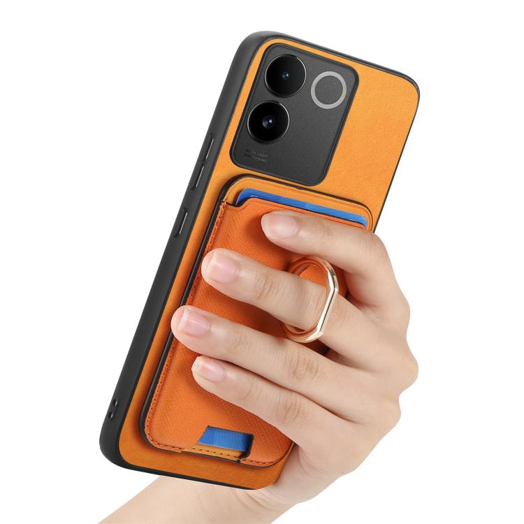 Funda Magsafe para Vivo Y300+ con Anillo de Cuero Cruzado Retro y Ranuras para Tarjetas (Amarillo)