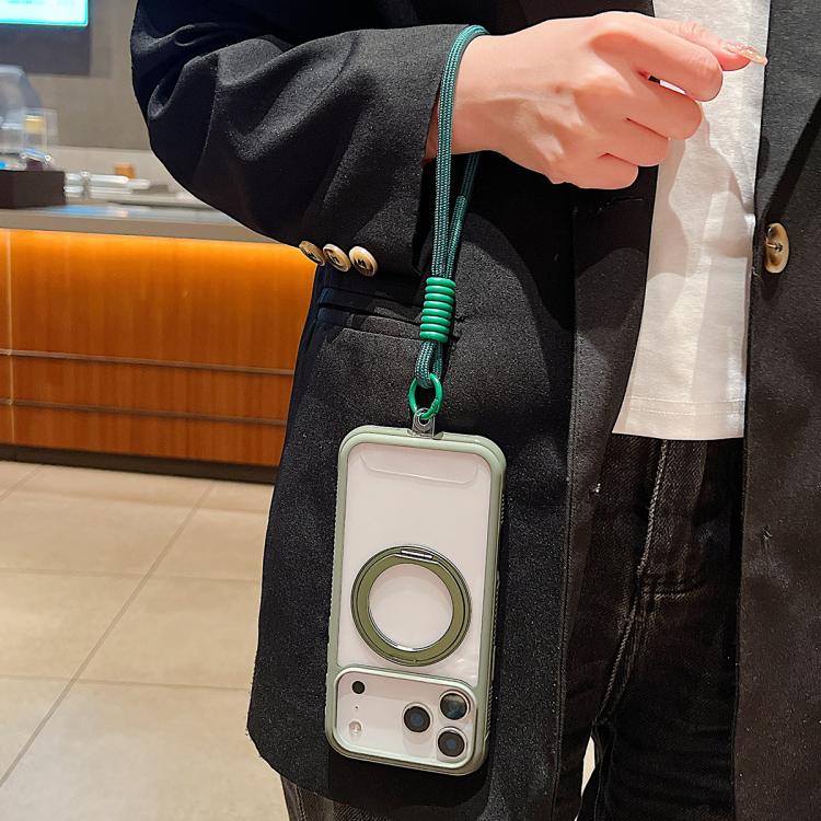 Funda MagSafe transparente con borde liso y rotación para iPhone 17 con correa para la muñeca (rosa)