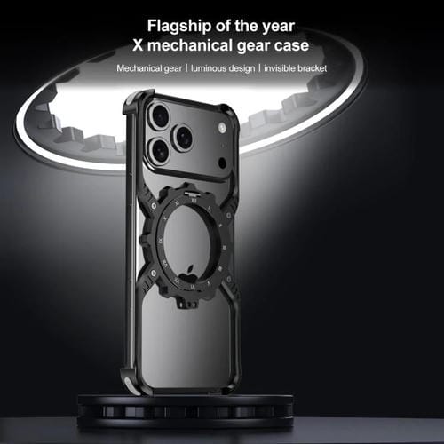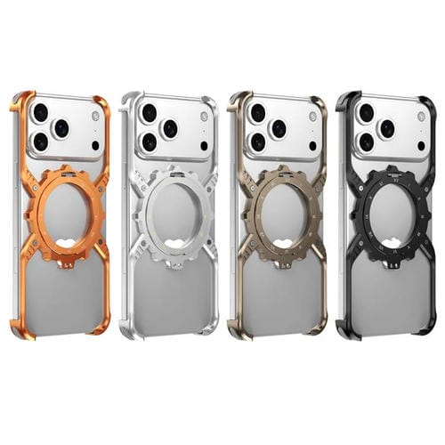 Funda metálica sin bordes con soporte MagSafe para iPhone 17 Mechanical Gear (dorada)