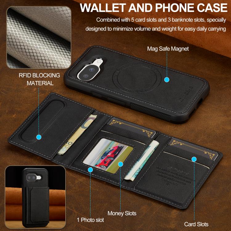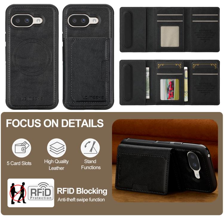 Funda para Google Pixel 9a LC.IMEEKE L5 con tarjetero RFID desmontable y Magsafe (negra)