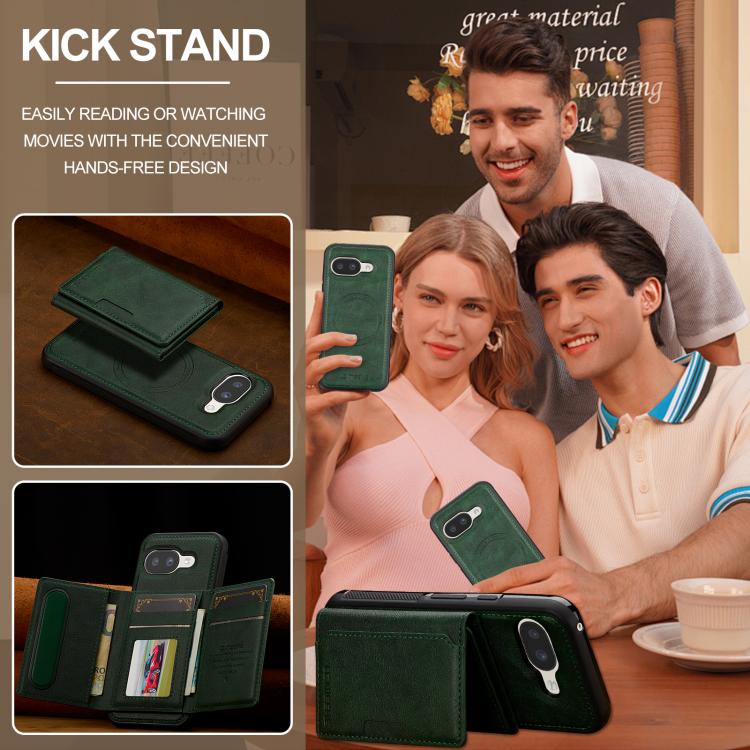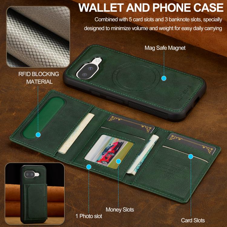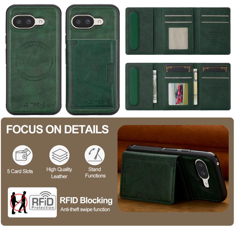 Funda para Google Pixel 9a LC.IMEEKE L5 con tarjetero RFID desmontable y Magsafe (verde)