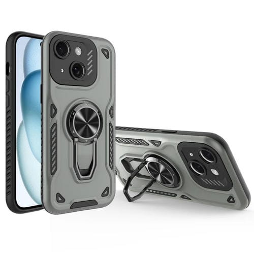 Funda para iPhone 15 Plus Soporte Giratorio Metal Carcasa Magnética TPU PC (Gris Carbono)