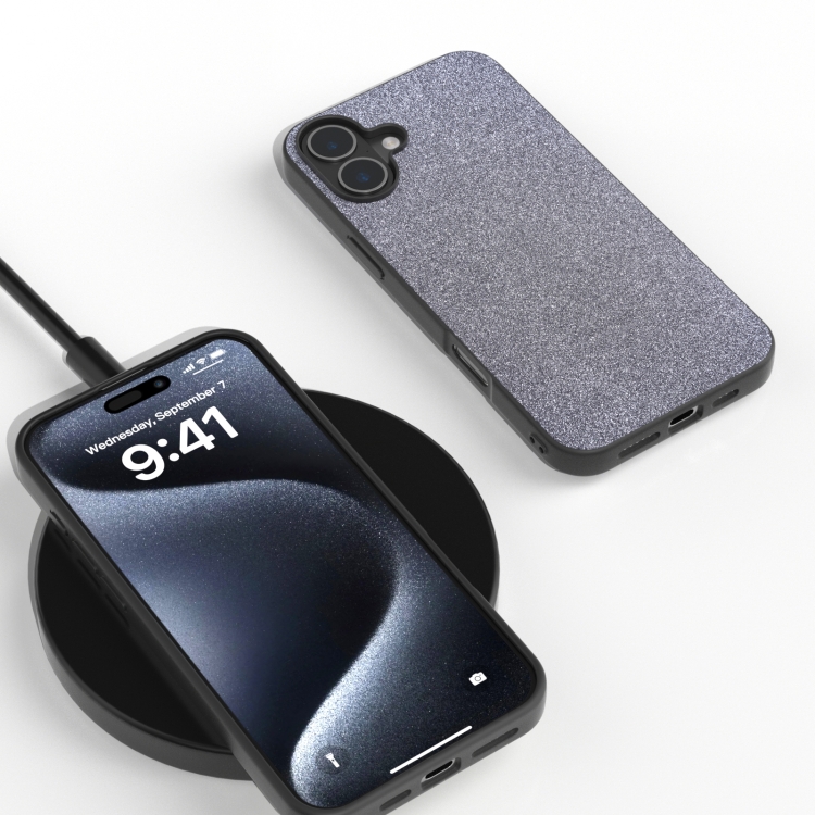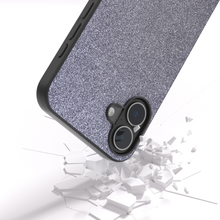 Funda para iPhone 16 con Marco Negro y Purpurina a Prueba de Golpes (Negra)