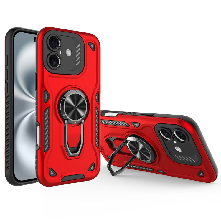 Funda para iPhone 16 con Soporte Giratorio de Metal y Carcasa Magnética TPU y PC (Rojo Brillante)