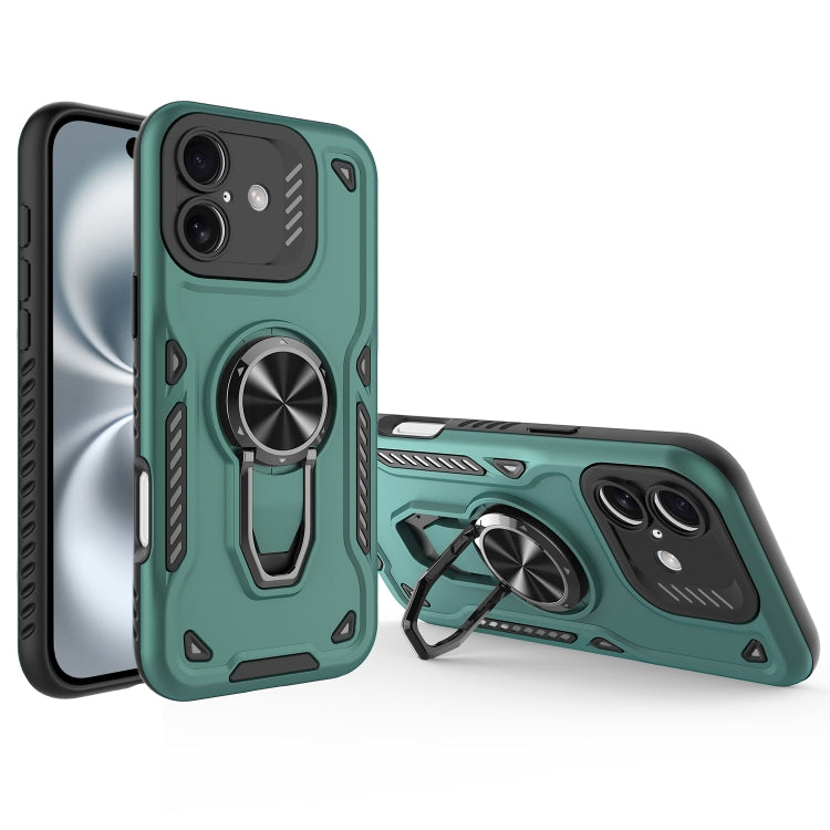 Funda para iPhone 16 Soporte Giratorio Metal Carcasa Magnética TPU PC (Verde)