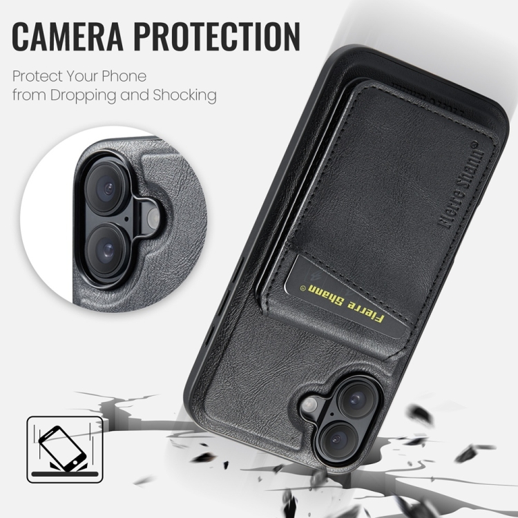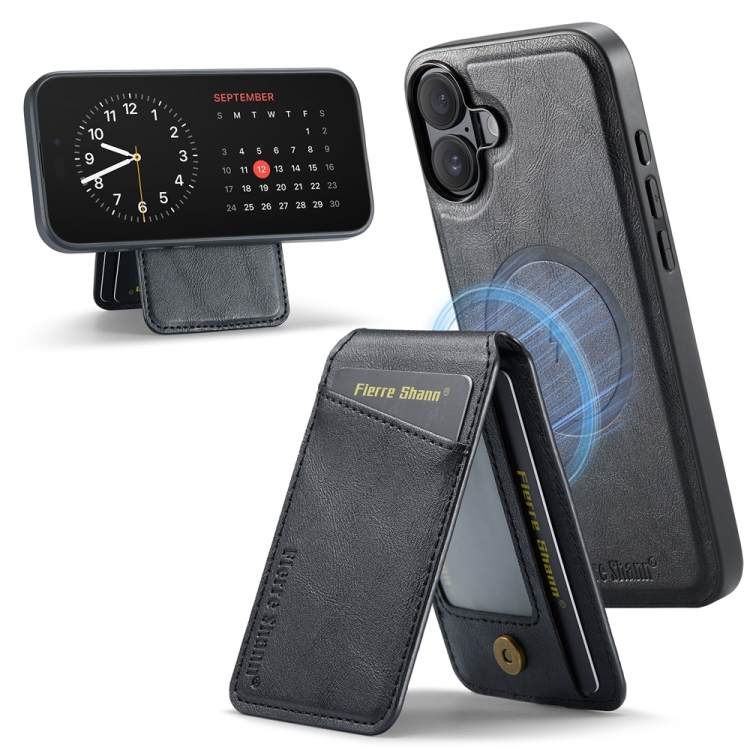 Funda para iPhone 16 Fierre Shann TaRJetero Magnético Piel de Vaca con Cera de Aceite (Negro)