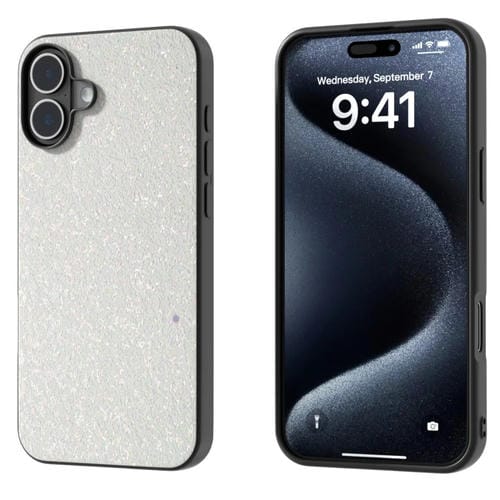 Funda para iPhone 16 Plus con Marco Negro y Purpurina de Colores (Blanca)