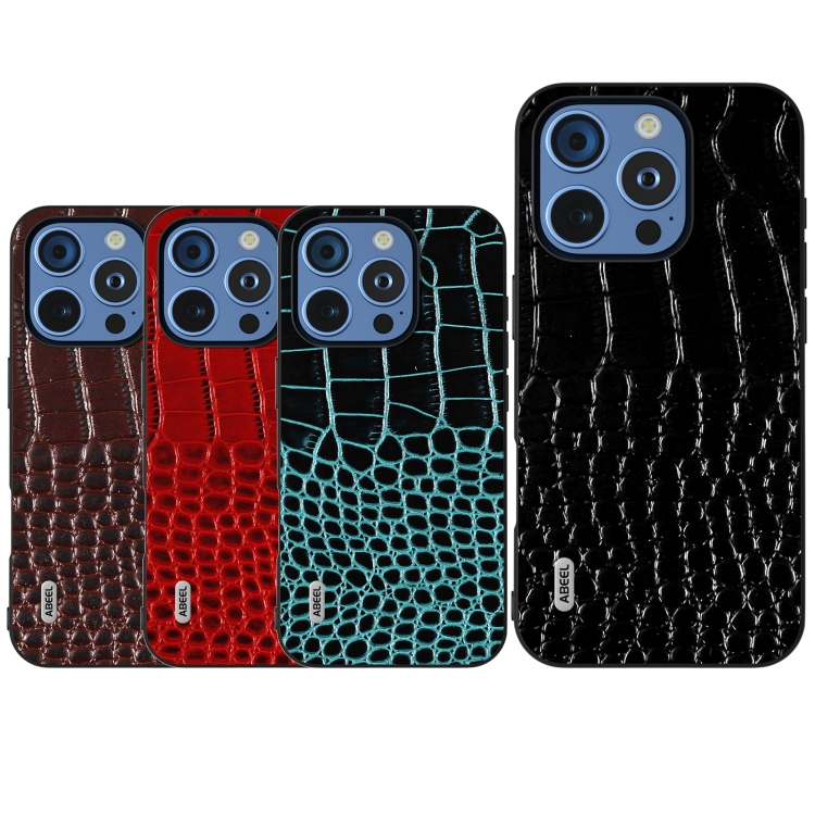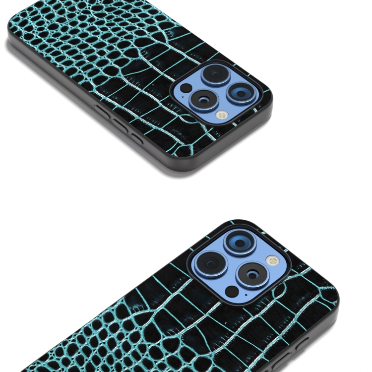 Funda para iPhone 16 Pro Abeel Piel Auténtica Diseño Cocodrilo Borde Negro (Azul)