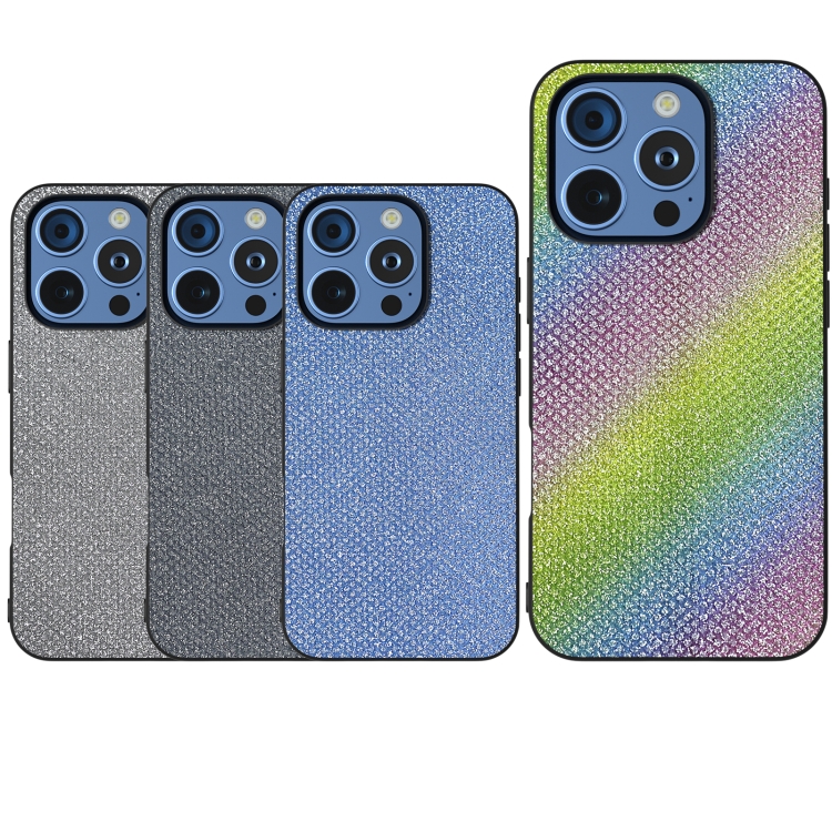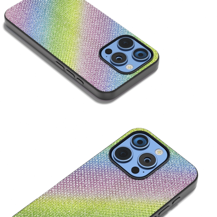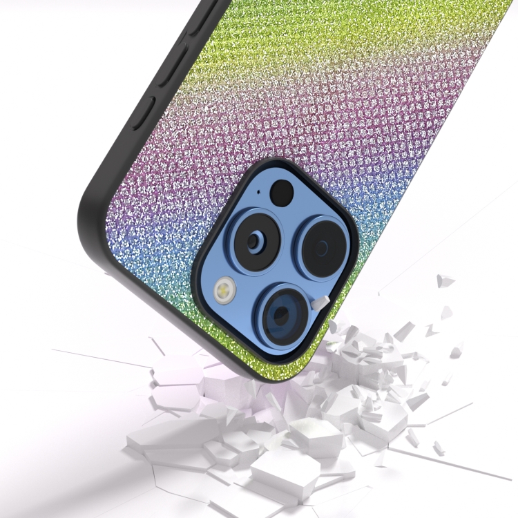 Funda para iPhone 16 Pro Marco Negro Diamantes Diamante Arcoíris