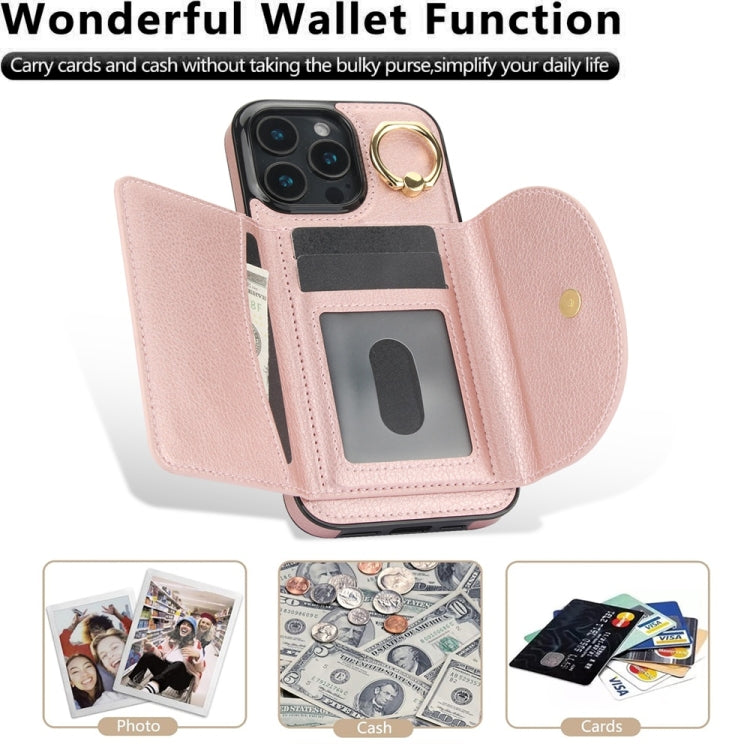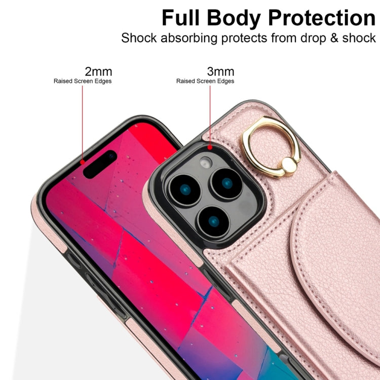 Funda para iPhone 16 Pro Ym007 con Tarjetero y Anillo Tacto Suave (Oro Rosa)