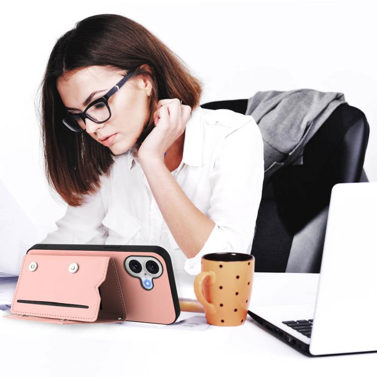 Funda para iPhone 17 con cuatro ranuras para tarjetas y correa para la muñeca (rosa)