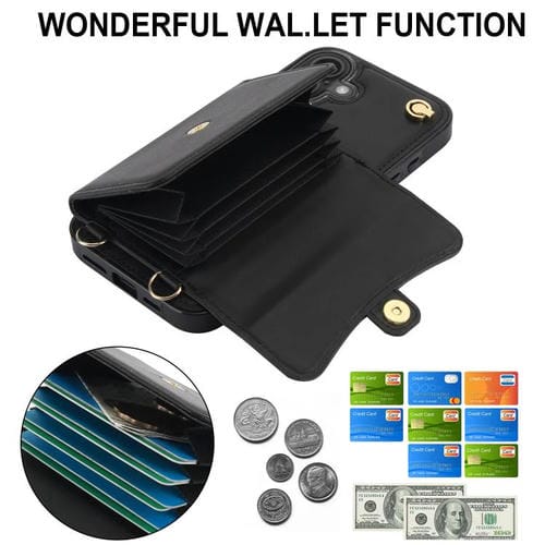 Funda para iPhone 17 con ranura para tarjeta RFID y cordón largo (negra)