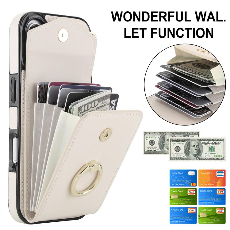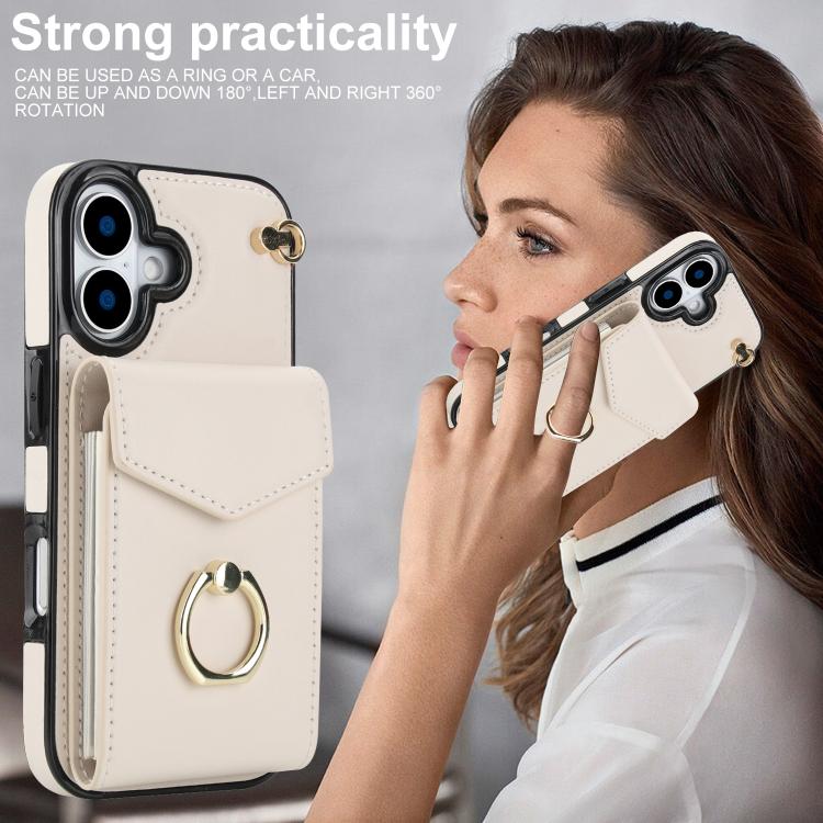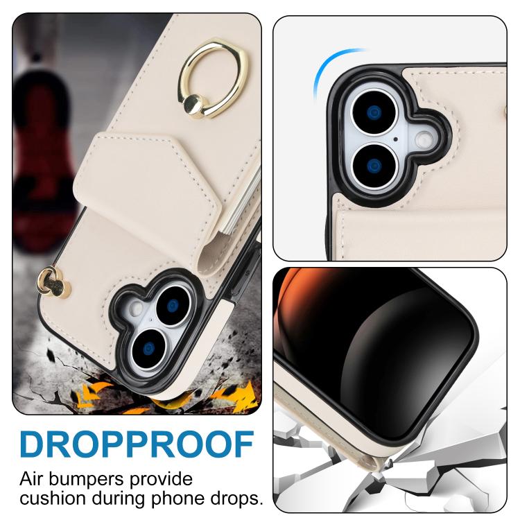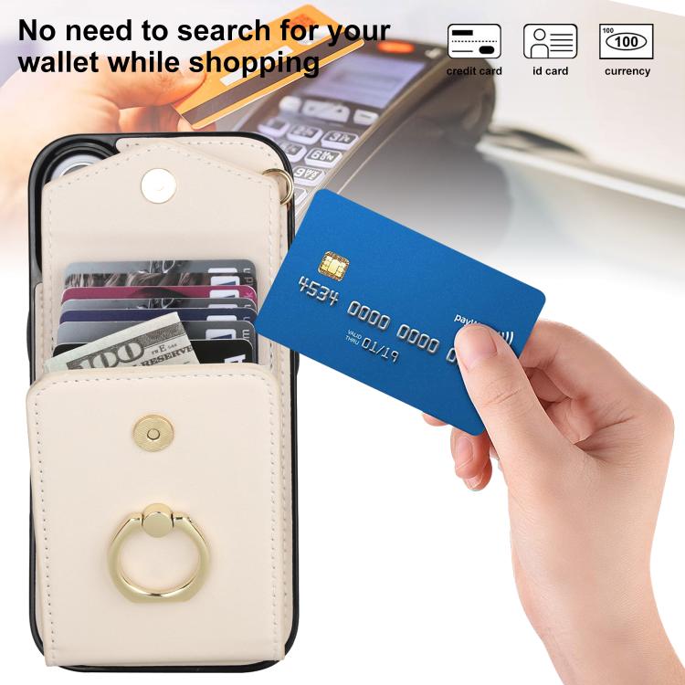 Funda para iPhone 17 con ranura para tarjeta RFID y soporte de anillo (beige)