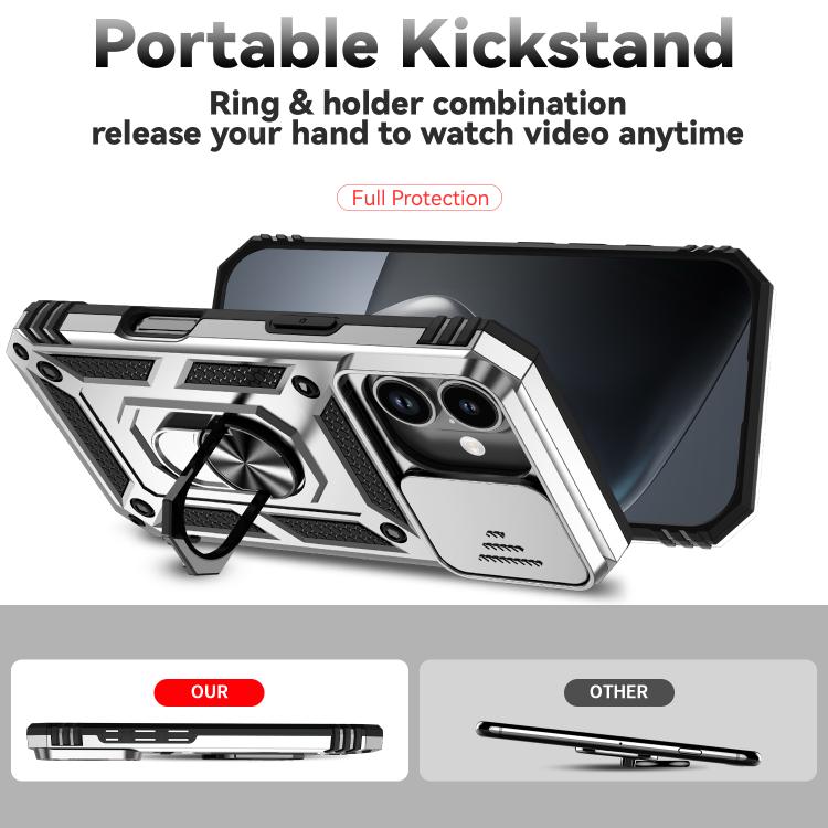 Funda para iPhone 17 con soporte deslizante Camshield (plateada)