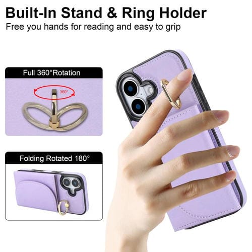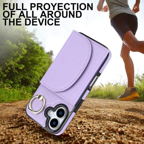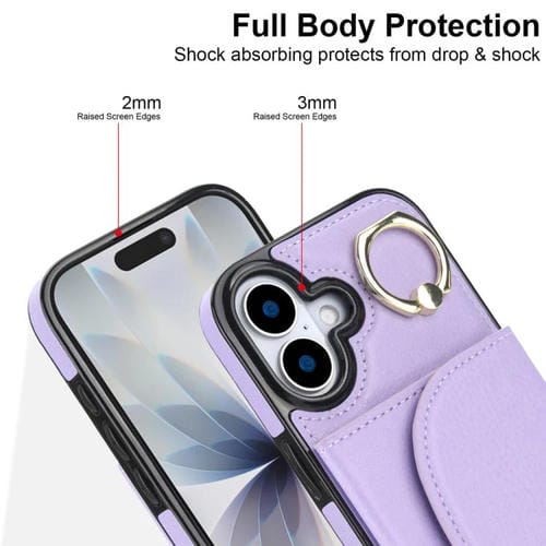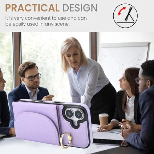 Funda para iPhone 17 con tarjetero y anillo, tacto suave (morado)