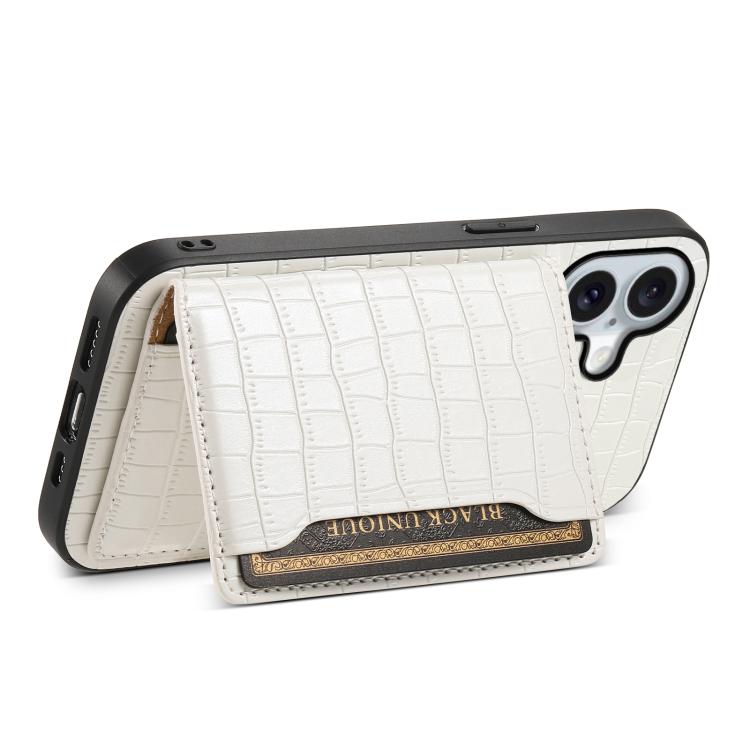 Funda para iPhone 17 con textura de cocodrilo y diseño de cartera de cobertura total (blanca)
