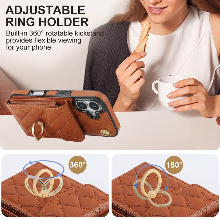 Funda para iPhone 17 con textura rómbica y cordón largo (marrón)