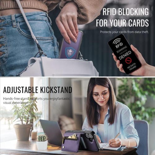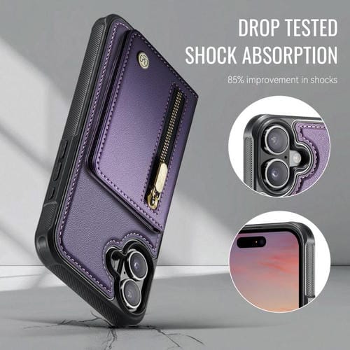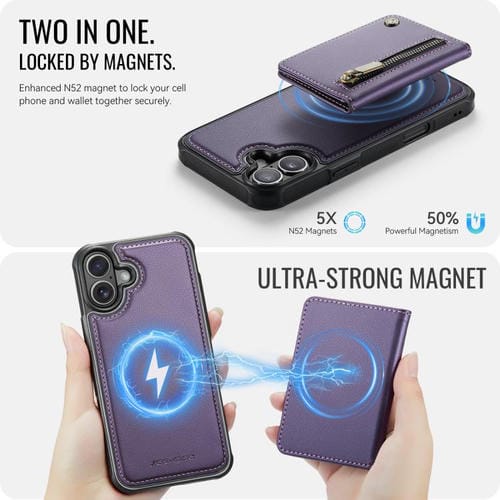 Funda para iPhone 17 JEEHOOD J12 con cremallera RFID MagSafe y tarjetero (morado)
