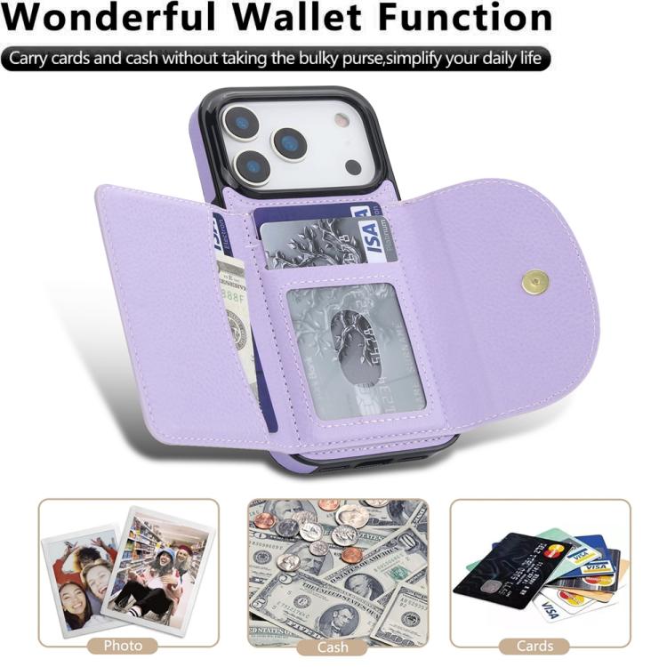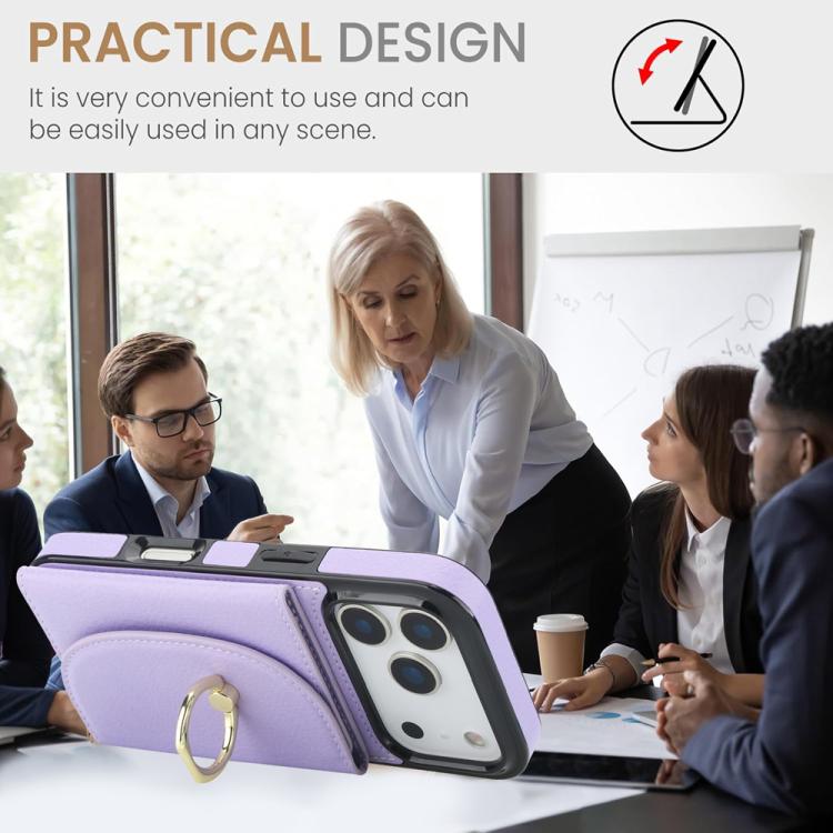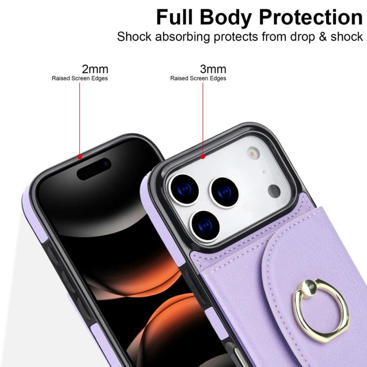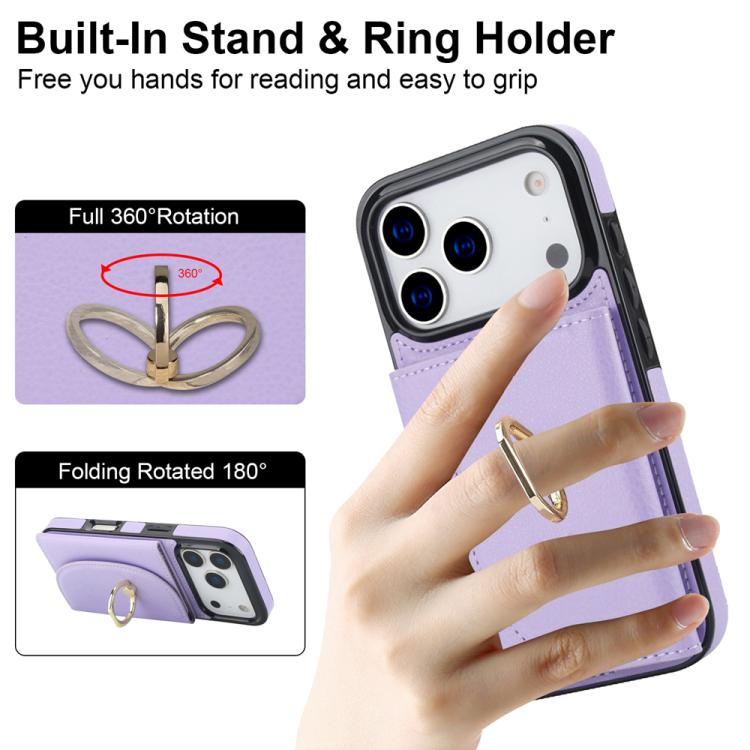Funda para iPhone 17 Pro con tarjetero y anillo, tacto suave (morado)
