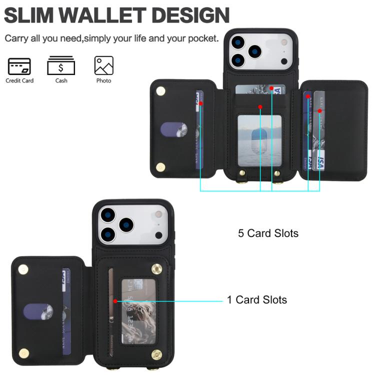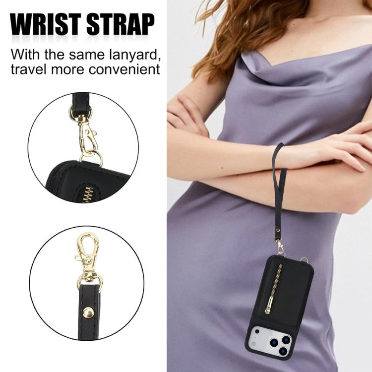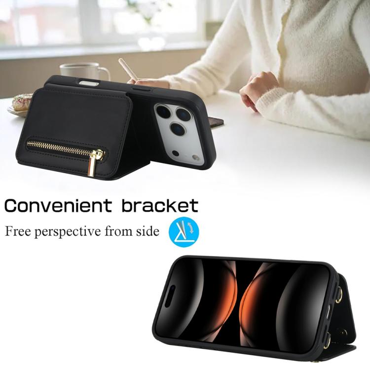 Funda para iPhone 17 Pro YM006 con cremallera y doble cordón (negra)