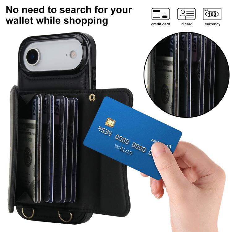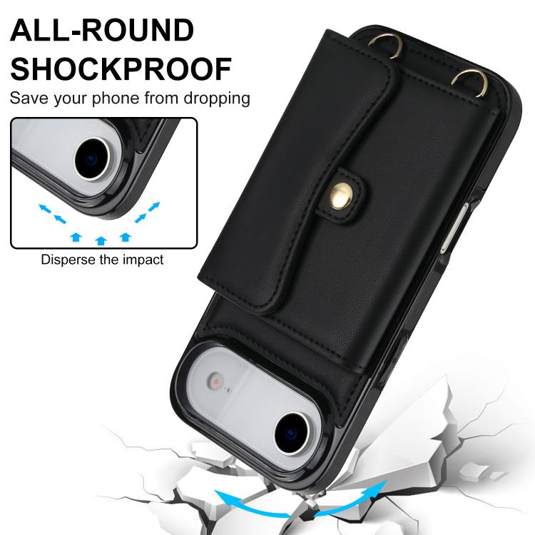 Funda para iPhone Air con ranura para tarjeta RFID y cordón largo (negra)