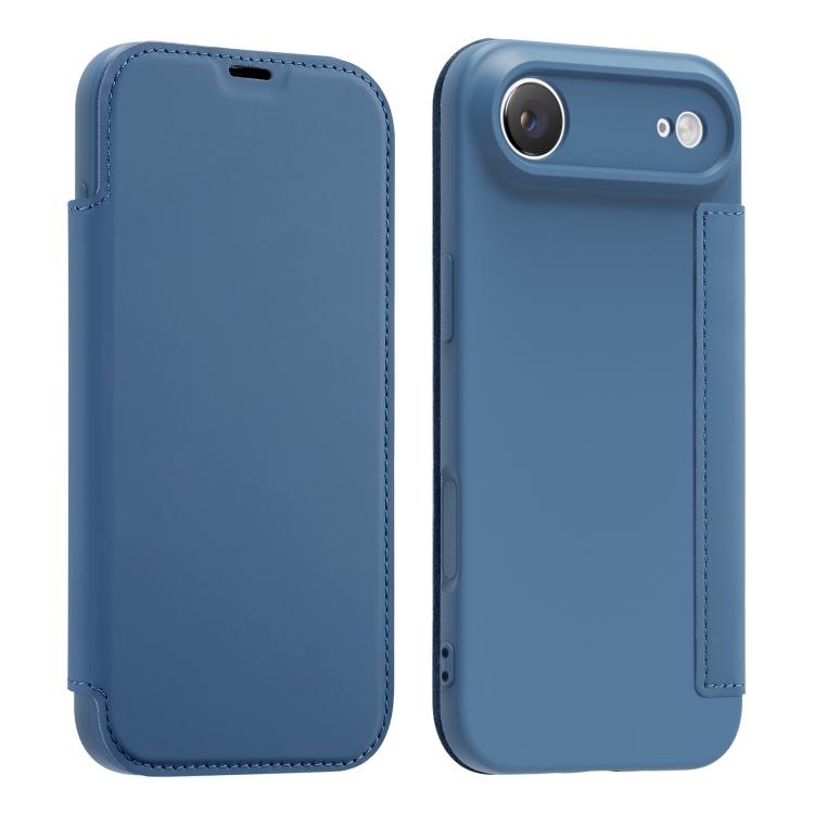 Funda para iPhone Air con tacto de piel sintética tipo Liquid Skin y ranuras para tarjetas (Azul)
