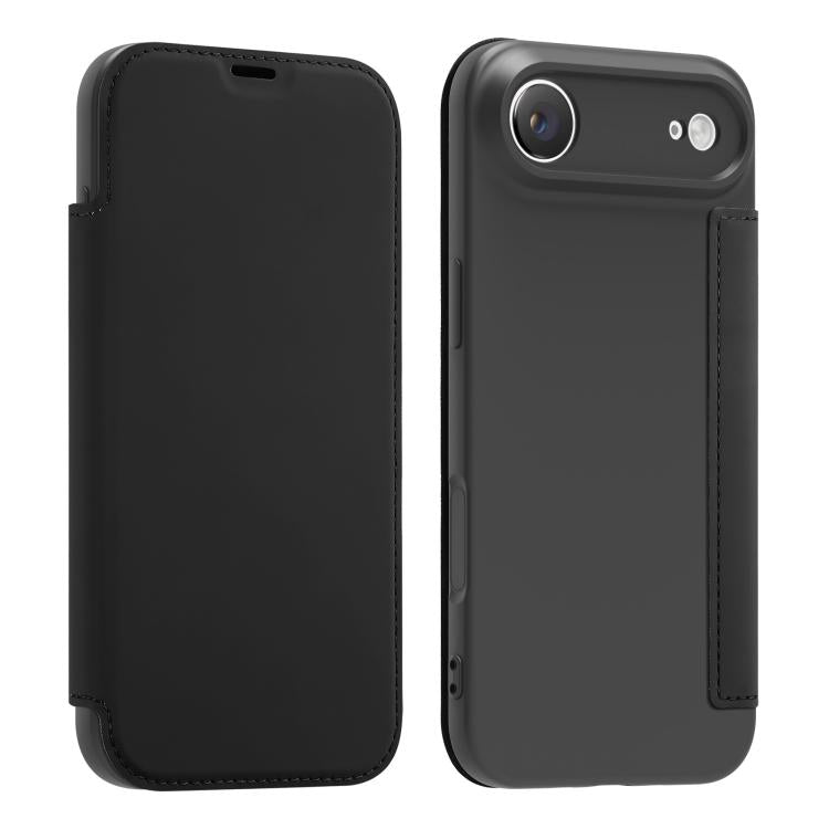 Funda para iPhone Air con tacto de piel sintética tipo Liquid Skin y ranuras para tarjetas (negra)