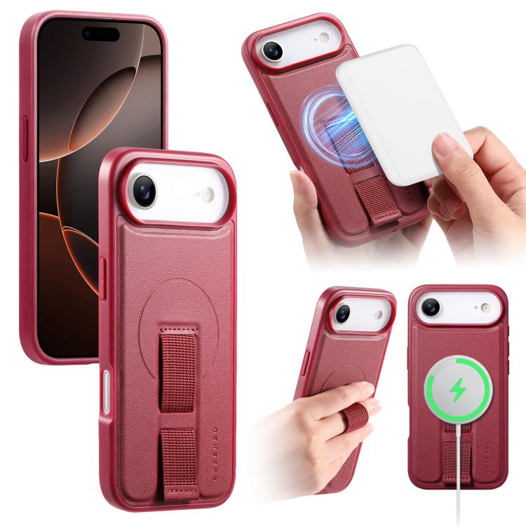 Funda para iPhone Air Neo con correa de agarre para los dedos y parte trasera MagSafe (roja)