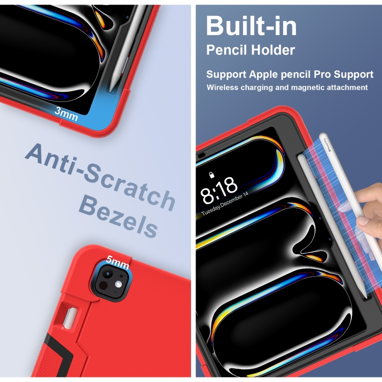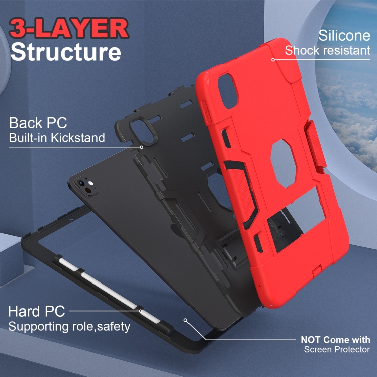 Funda de Silicona Acrílica con Soporte para iPad Pro 11 (2024) (Rojo y Negro)
