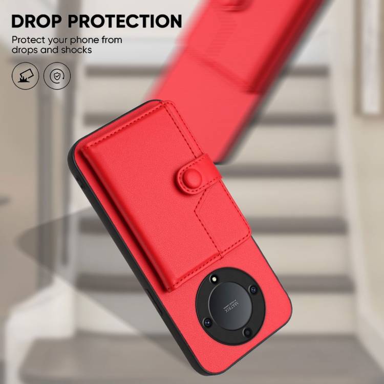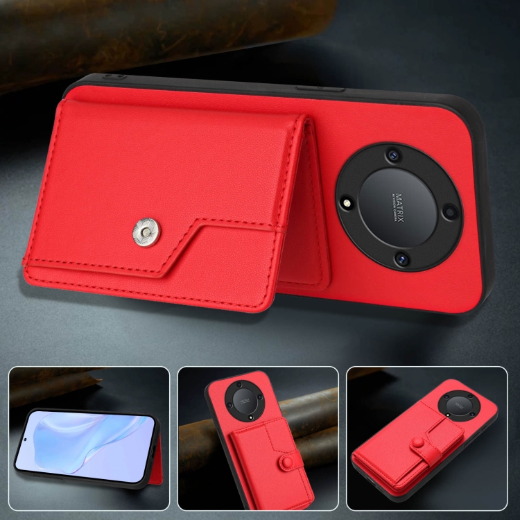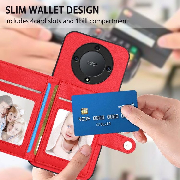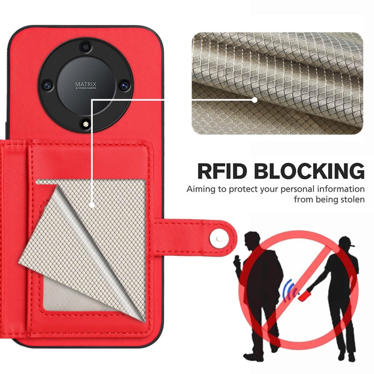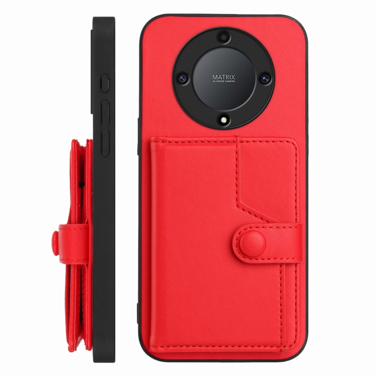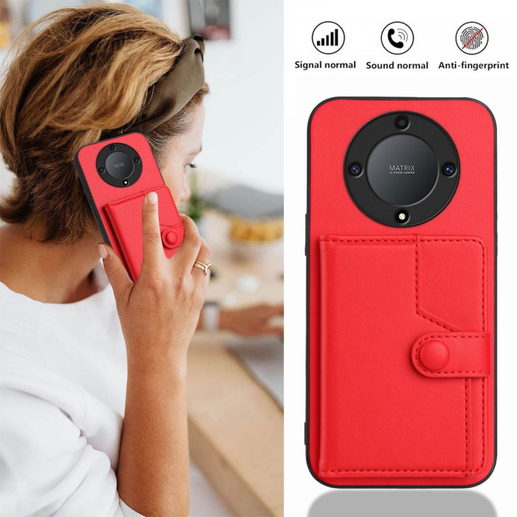 Funda para Teléfono Antirrobo con Botón y Tarjetero RFID para Honor X9A/Magic5 Lite (Roja)