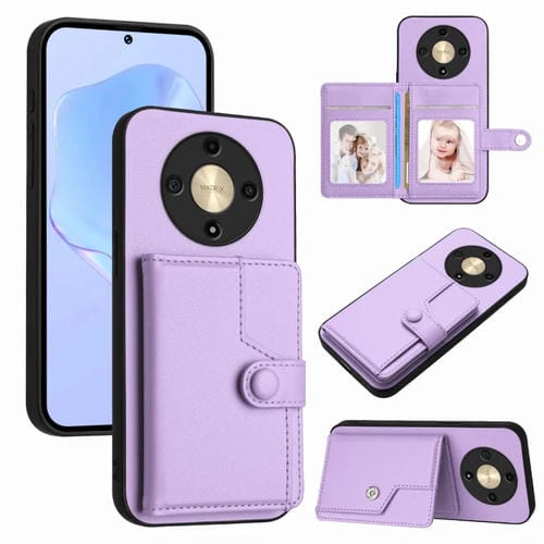 Funda para Teléfono Antirrobo con Botón y Tarjetero RFID para Honor X9B y Magic6 Lite 5G (Morado)