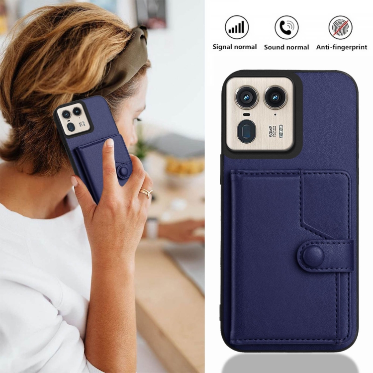 Funda para Teléfono Antirrobo con Botón y Tarjetero RFID Motorola Moto X50 Ultra (Azul)