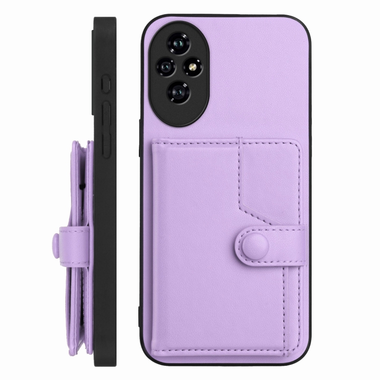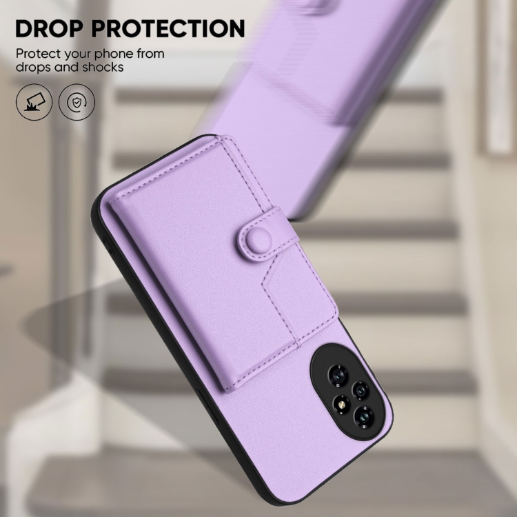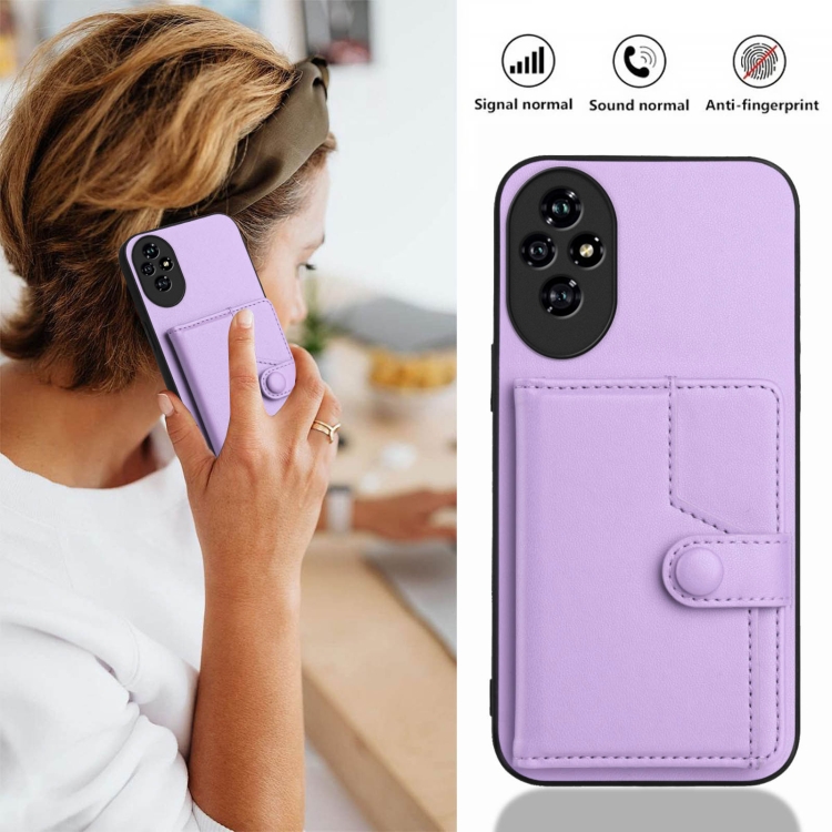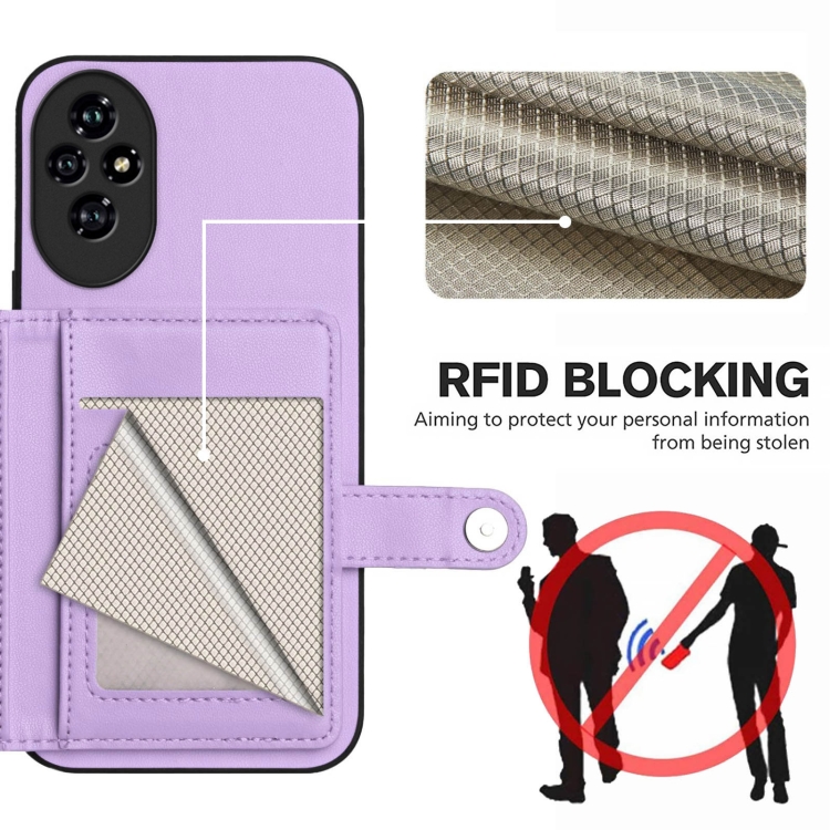 Funda para Teléfono Antirrobo con RFID y Tarjetero con Botón para Honor 200 (Morado)