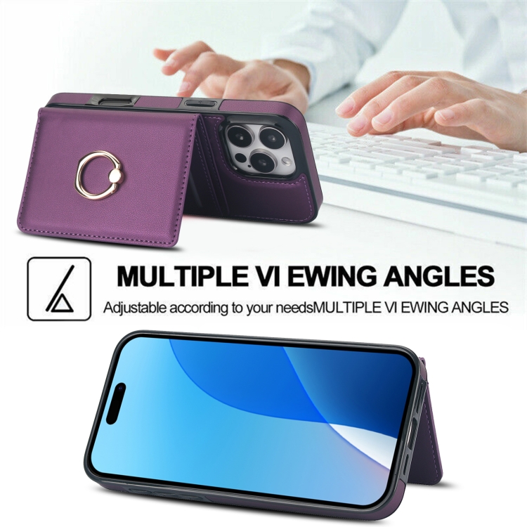 Funda para Teléfono con Anillo para Tarjeta Antirrobo Rfid iPhone 16 Pro Max (Morado Oscuro)