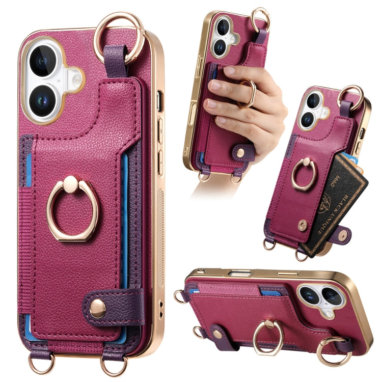 Funda para Teléfono iPhone 16 con Anillo y Tarjetero con Lazo para Colgar (Morado)