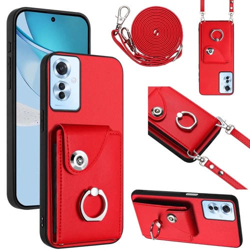 Funda para Teléfono con Anillo y TaRJetero para Oppo F25 Pro 5G, con Cordón Largo (Rojo)